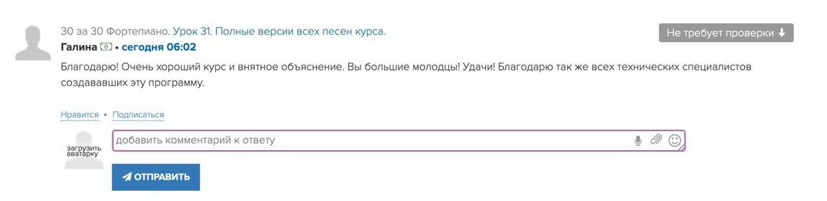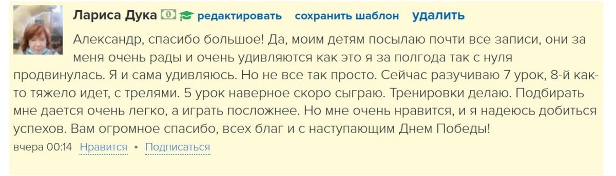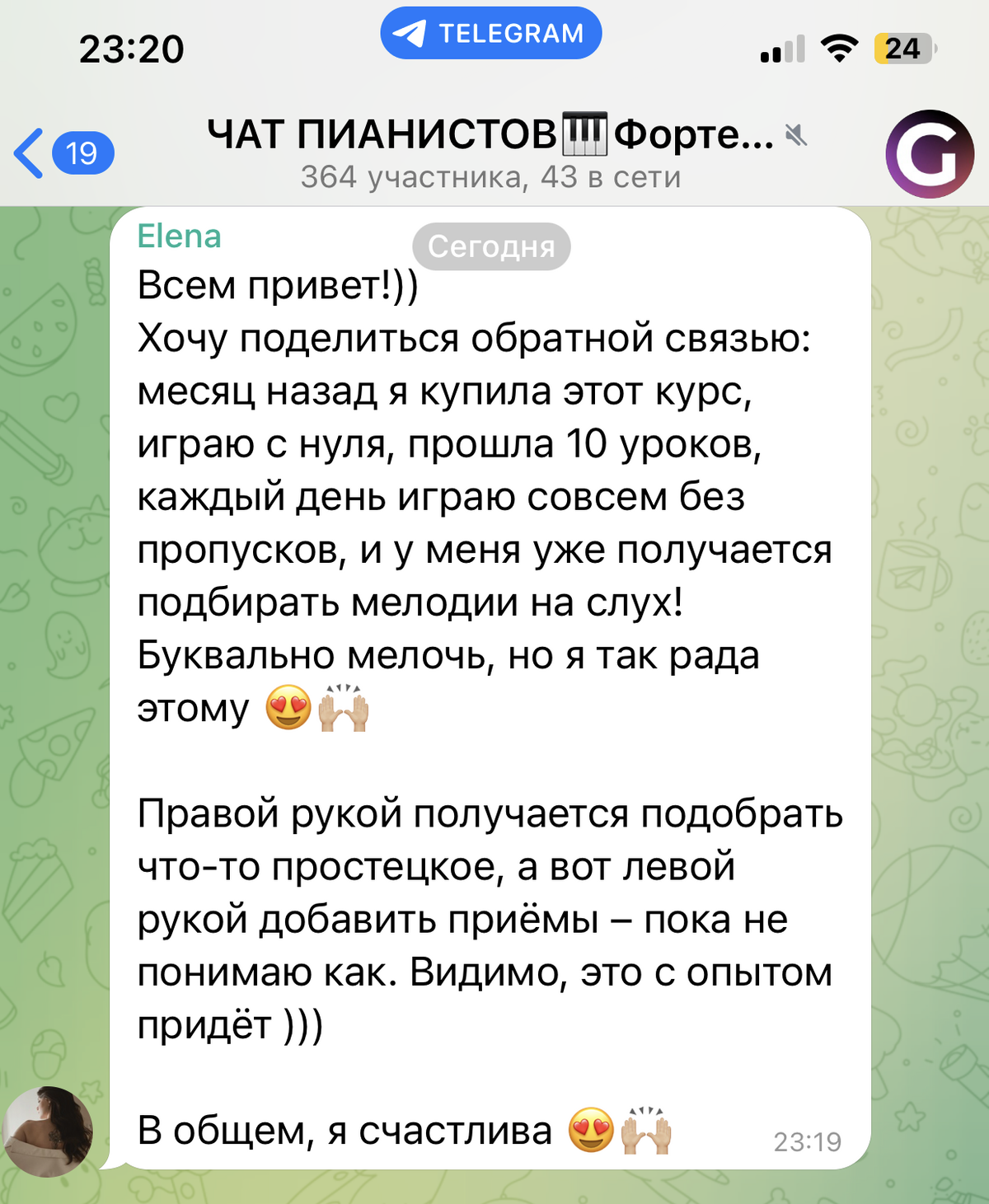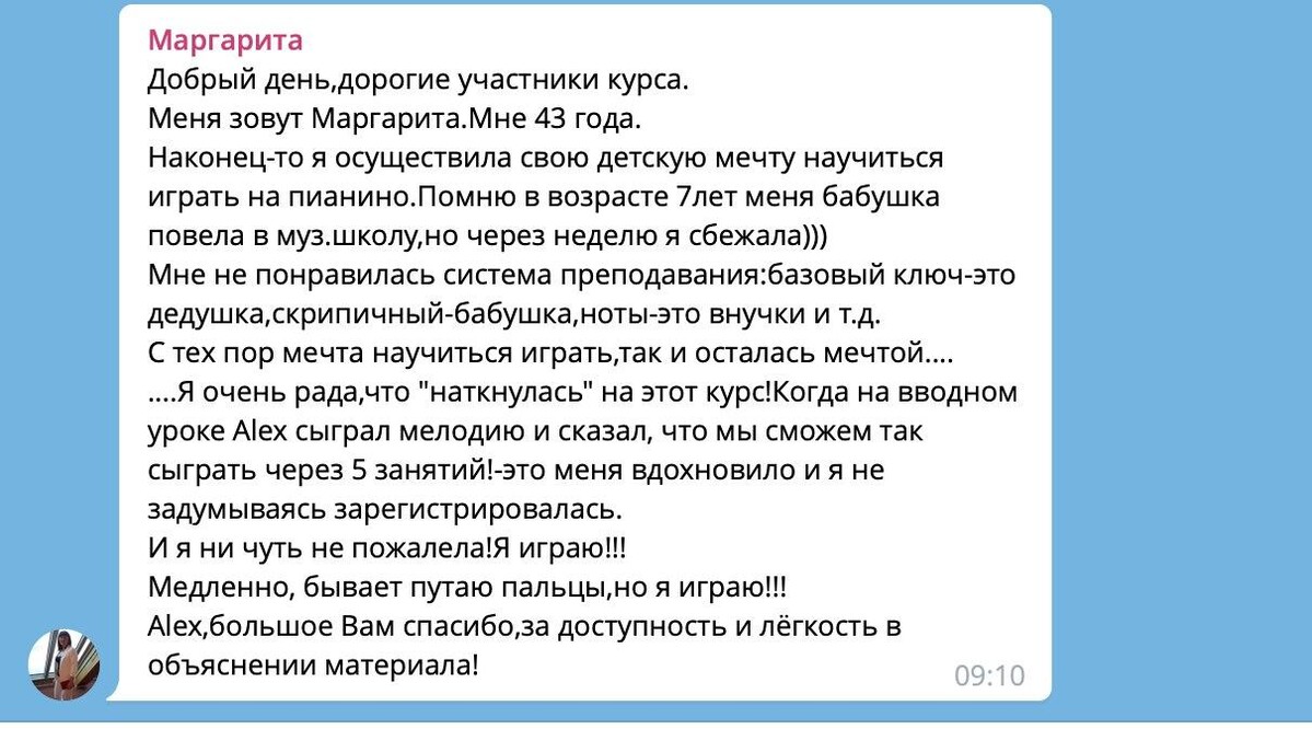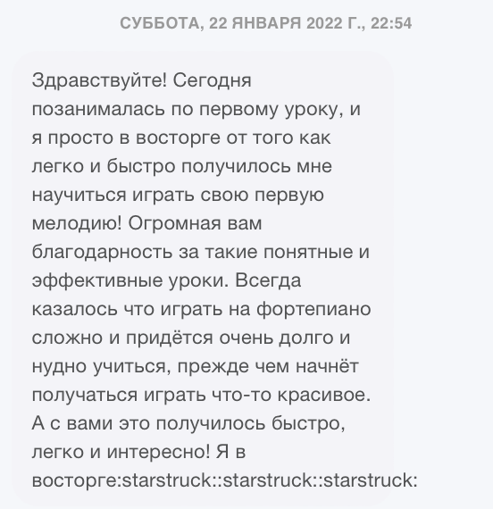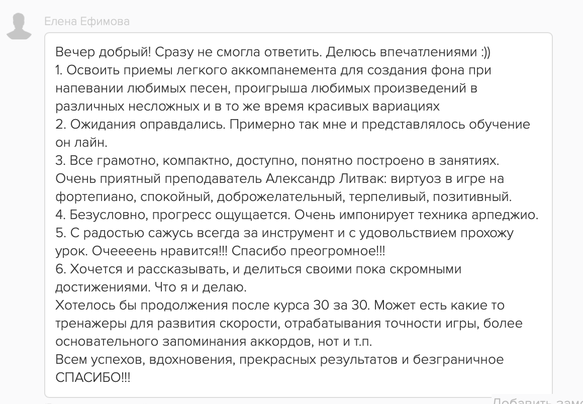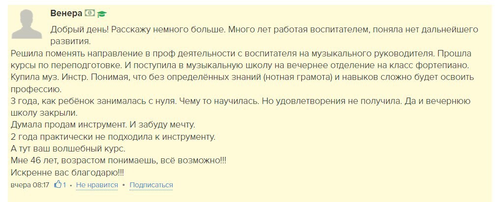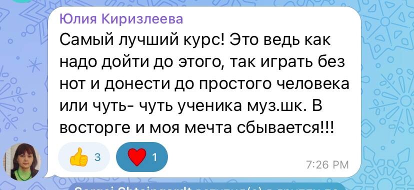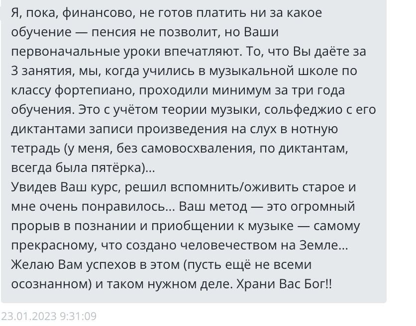 Отзывы об онлайн-курсе по игре на фортепиано по слуху без нот «ФОРТЕПИАНО СВОБОДНО И НА СЛУХ НАВСЕГДА»